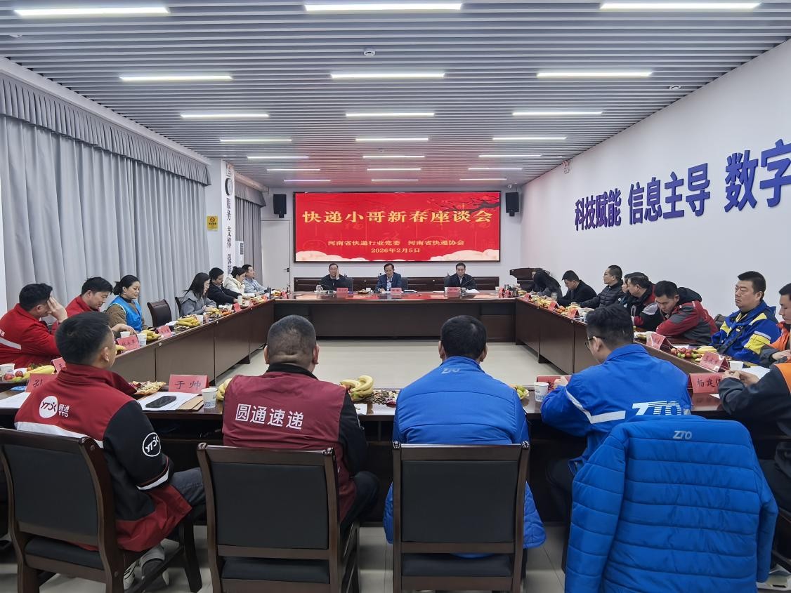 2026年02月09日來源:新春將至,暖意先行。為傾聽快遞小哥心聲、保障快遞小哥權(quán)益、凝聚行業(yè)發(fā)展合力,近日,河南省快遞行業(yè)黨委會同省快遞協(xié)會召開快遞小哥新春座談會,與來自郵政、順豐、京東、德邦、申通、中通、圓通、韻達(dá)、極兔、菜鳥等企業(yè)的15名一線快遞小哥面對面交流,傾聽基層聲音、回應(yīng)群眾關(guān)切,共話行業(yè)發(fā)展、共迎新春佳節(jié)。