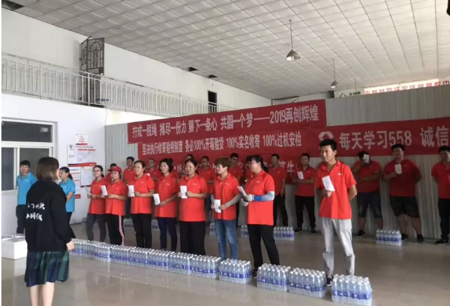 由于天氣炎熱干燥,山東德州樂陵站點為保證業(yè)務(wù)員在派件過程中能夠及時補(bǔ)水,給每人發(fā)放一提瓶裝水。