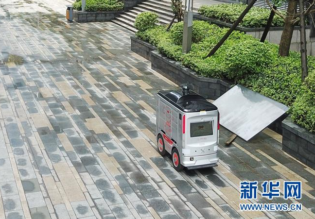 5月25日,“智能配送機(jī)器人”自主行駛在道路上。