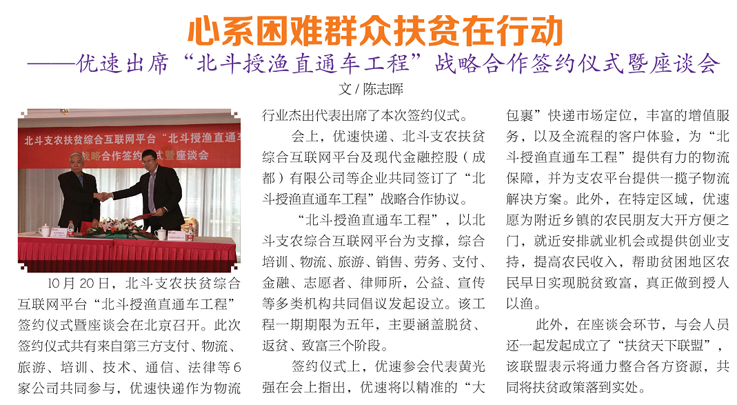 心系困難群眾扶貧在行動----優(yōu)速出席“北斗授漁直通車工程”戰(zhàn)略合作協(xié)議暨座談會