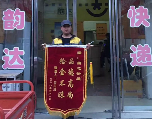 韻達(dá)小哥拾金不昧,失主送錦旗感謝