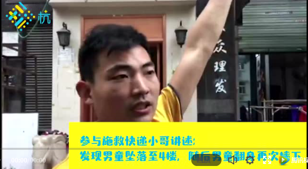杭州4歲男寶6樓墜下!落地瞬間,一群快遞小哥伸手接?。?/h2> 2018年05月23日來源: