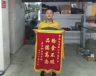 2018年09月18日來源:韻達(dá)速遞近日,韻達(dá)上海市曹楊區(qū)網(wǎng)點(diǎn)快遞員張軍云收到了一面“拾金不昧,品德高尚”的錦旗,獲得客戶的感激與稱頌。