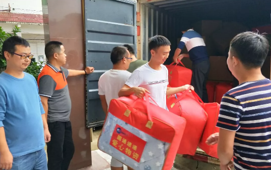 經(jīng)過前期的精心準(zhǔn)備,湖南省區(qū)將大米、被子、衣服、鞋子、書包等愛心物資打包整理后,安排專車運(yùn)送到靛房鎮(zhèn)。
