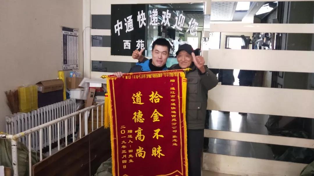 3月4日上午,老人來(lái)到通遼市西苑分部網(wǎng)點(diǎn)找到了張志遠(yuǎn),送上了一面寫(xiě)有“拾金不昧 道德高尚”的錦旗,“通遼的好人,通遼的雷鋒,這是我的一點(diǎn)心意?!崩先司o緊握著張志遠(yuǎn)的手表達(dá)謝意?!岸嗵澚酥型▎T工張志遠(yuǎn),要不是碰著這樣好人的話,這錢(qián)實(shí)在渺茫?!?