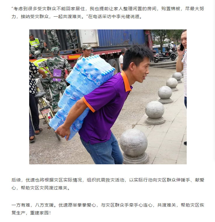 抗震救災(zāi),優(yōu)速人在行動(dòng)!