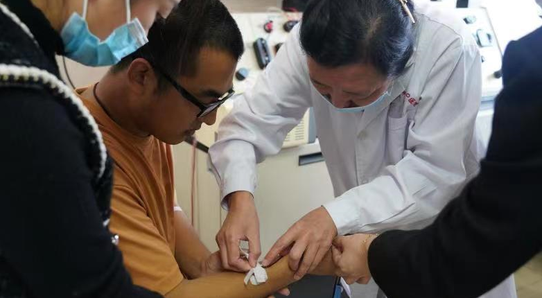 崔洪財(cái)愛人趙秋娜一直陪伴在他的身邊,說起這幾天的經(jīng)歷,不禁紅了眼眶,“第一天打完針還好,從第二天開始,他的反應(yīng)就比較大,頭暈惡心有時(shí)還嘔吐,我看著真是很心疼。”趙秋娜擦掉眼淚繼續(xù)說道:“不過我們都覺得,如果能救人一命,受這些罪也值了!”