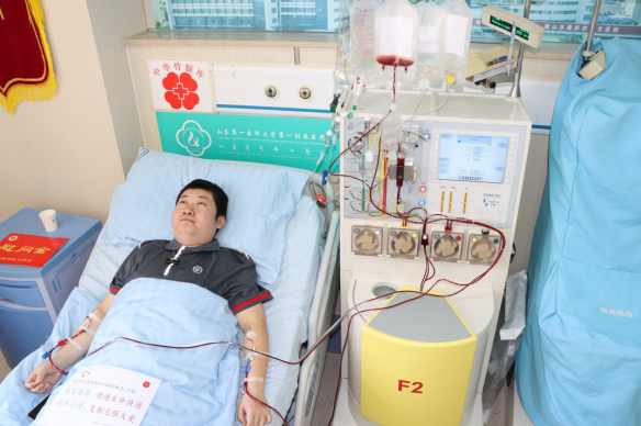 配型成功后,盧超發(fā)自內(nèi)心地高興,他表示愿意盡快完成捐獻(xiàn),助他人“綻放新生”。于是,5月9日,在山東第一醫(yī)科大學(xué)第一附屬醫(yī)院(山東省千佛山醫(yī)院),他順利完成造血干細(xì)胞采集。盧超的大愛善舉當(dāng)天也引發(fā)諸多媒體關(guān)注,在采集完成后,接受媒體采訪時,盧超說:“捐獻(xiàn)造血干細(xì)胞是件既高尚又偉大的事,不僅僅是救治了一名患者,更是挽救了一個家庭?!彼転檫h(yuǎn)方素未謀面的患者帶去生的希望,善莫大焉。