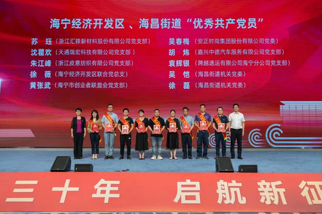2022年6月29日,由中共浙江海寧經(jīng)濟(jì)開發(fā)區(qū)工作委員會(huì)、中共海寧海昌街道委員會(huì)共同主辦,以“守根護(hù)脈當(dāng)表率,砥礪奮進(jìn)映初心”為主題的慶祝建黨101周年暨“七·一”表彰大會(huì)在泛半導(dǎo)體產(chǎn)業(yè)園隆重舉行。